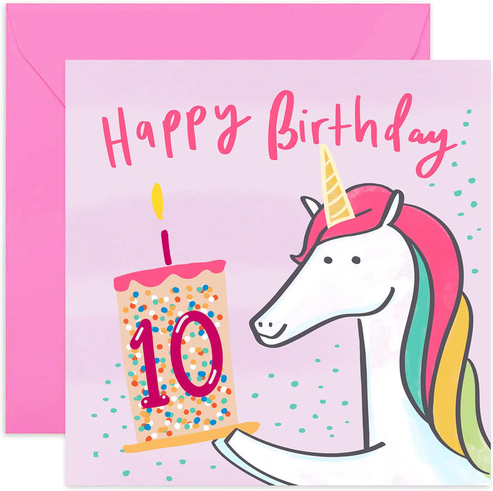 Old English Co. Happy 10th Unicorn Birthday Card Square Tenth
